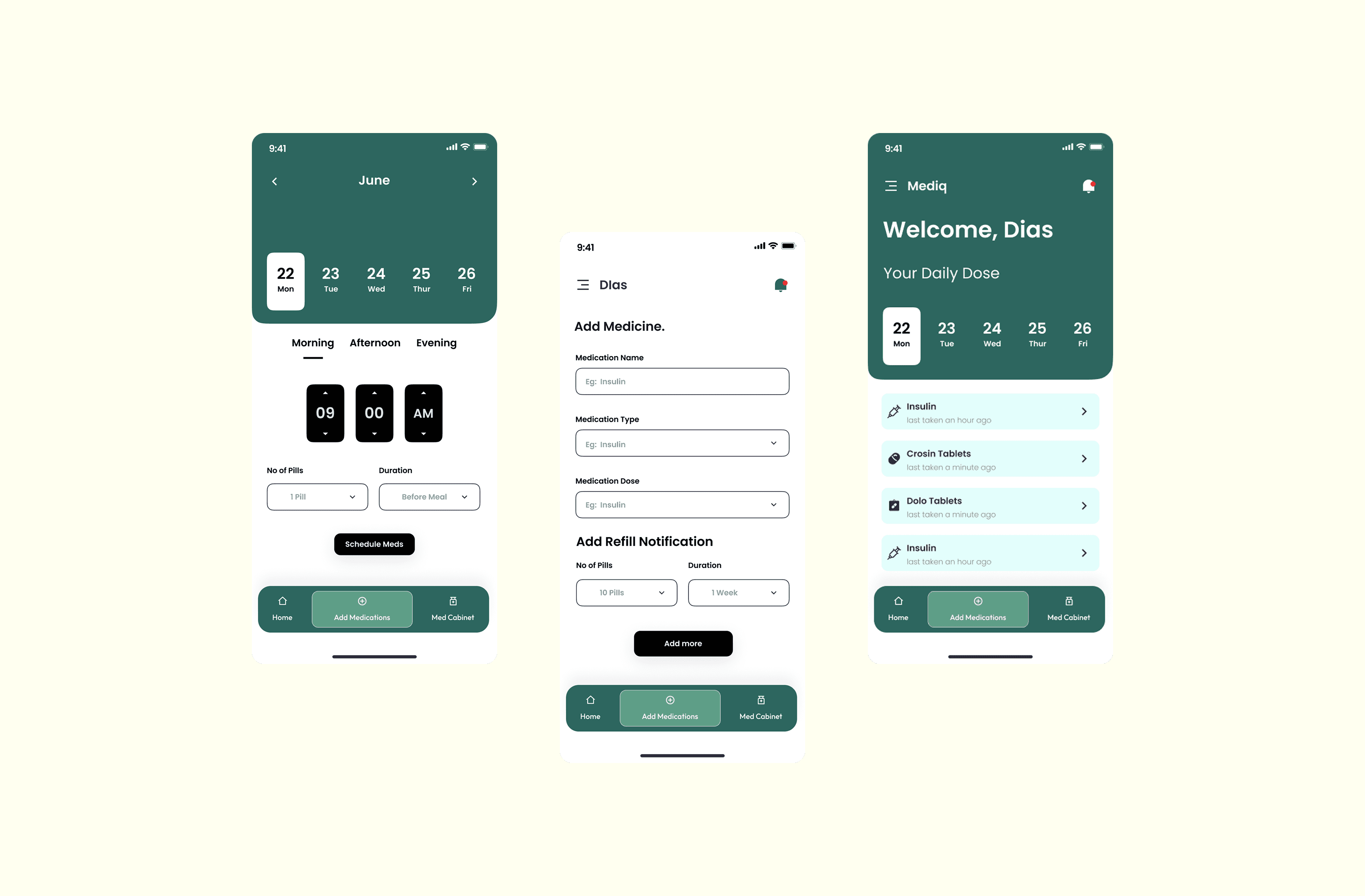 Mediq is a user-friendly medication reminder app designed to help individuals stay on track with their prescriptions. With features like automated reminders, inventory tracking, and refill alerts, it ensures users never miss a dose. The project focused on crafting an intuitive, seamless experience, addressing the challenge of medication adherence while considering usability, accessibility, and ease of interaction for users of all backgrounds.